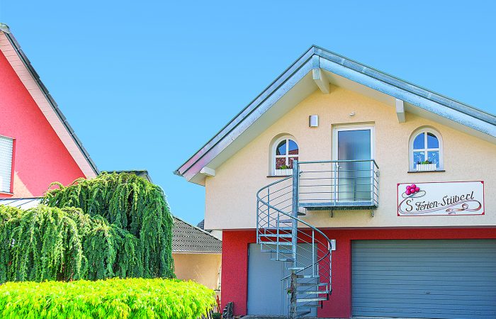 Die Wohnung befindet sich im ersten Obergeschoss und ist durch eine Wendeltreppe zu erreichen. Es gibt keine Zugangsmöglichkeiten für Rollstühle.